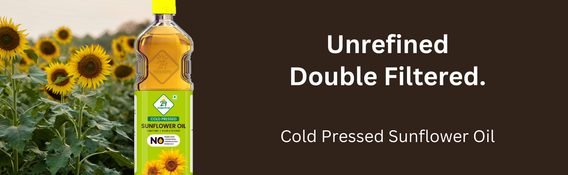 Light, nutritious, and packed with natural goodness—24 Mantra Organic Cold-Pressed Sunflower Oil is a heart-friendly choice for your everyday cooking. Made from premium sunflower seeds grown in Andhra Pradesh and Karnataka, it is cold-pressed, unrefined, and double-filtered to preserve its natural nutrients and mild, delicate flavor. Whether used for sautéing, baking, or dressing salads, this oil keeps your meals light yet full of nourishment.