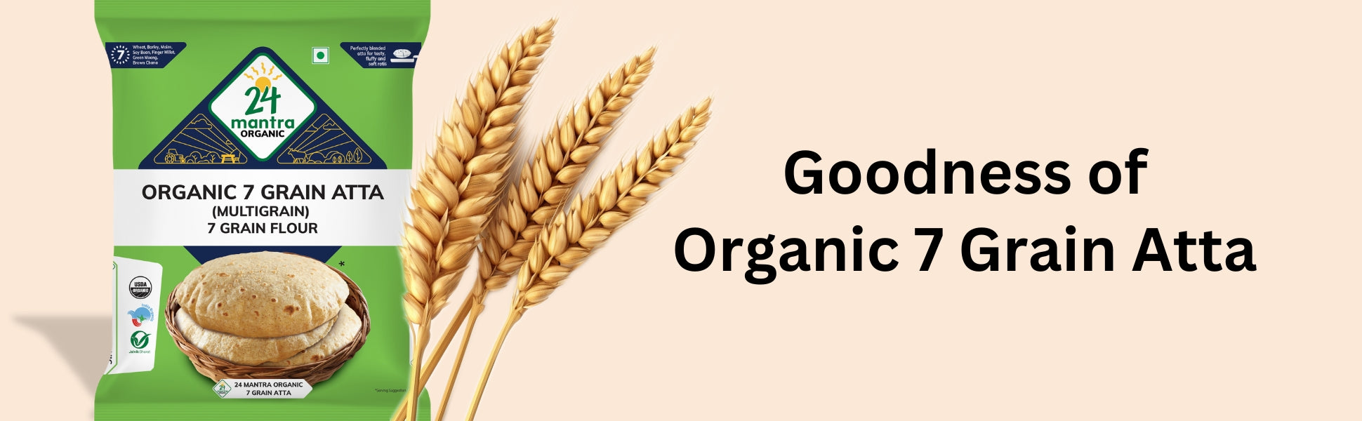 A wholesome blend of seven organic grains—wheat, ragi, soybean, green moong, barley, maize, and brown chana—carefully combined to bring you soft, fluffy rotis with every roll. Unlike typical multigrain flours, this atta contains a higher proportion of nutrient-rich grains compared to wheat, offering both variety and balance in your everyday meals.