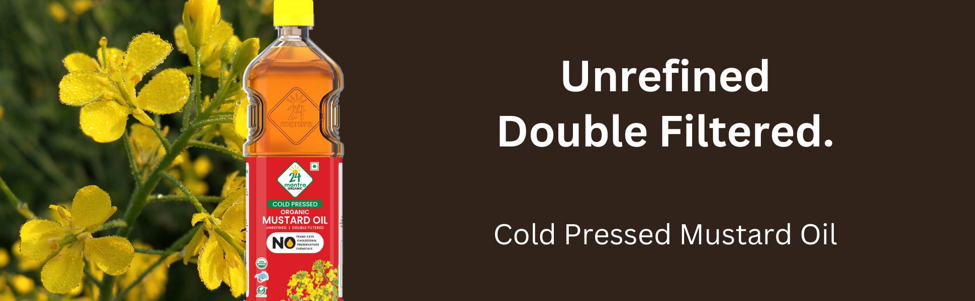 Bold, pungent, and packed with benefits—24 Mantra Organic Cold-Pressed Mustard Oil is a staple in Indian kitchens for its rich aroma and powerful health properties. Made from premium mustard seeds grown in Madhya Pradesh and Rajasthan, it is cold-pressed, unrefined, and double-filtered to ensure purity and authentic taste. From traditional curries to pickles, this oil enhances every dish with its robust flavor and natural goodness.